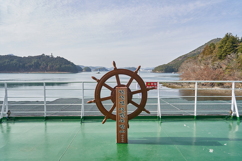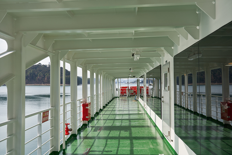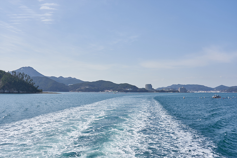 여객선 주변의 풍경을 둘러봅니다. 남해의 맑은 바닷물이 참 보기 좋습니다.