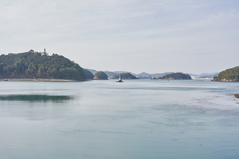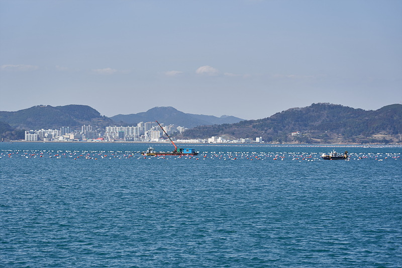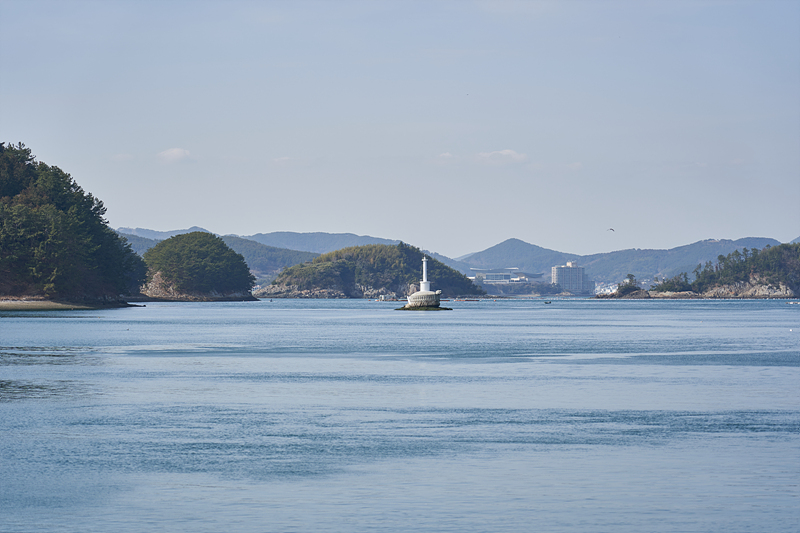 통영이 굴이 유명한 곳이니 저기 보이는 부표가 있는 곳은 굴양식장이려나요?