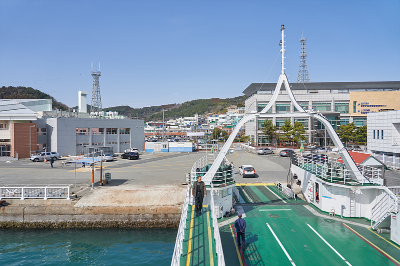 통영항을 출발할 때 승객들이 많지 않아서 그런지 먼저 내리는 사람들은 많지 않습니다.