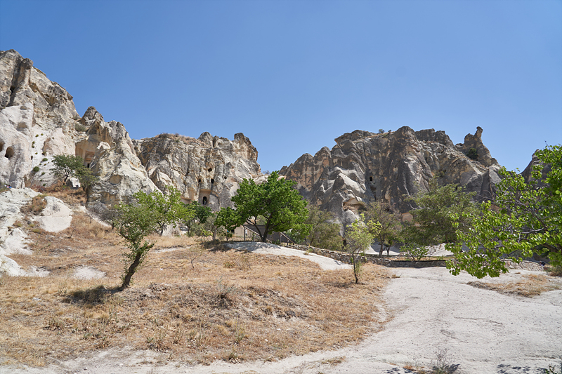 지금까지 많이 본 버섯바위와 다르게 큰 바위 안에 구멍을 파서 만든 집들이 많이 보입니다.