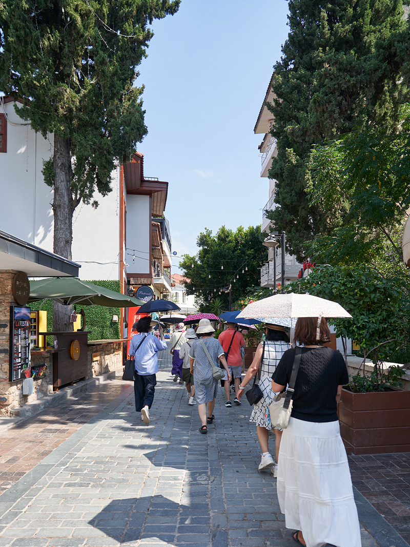 카라알리올루 공원으로 걸어가는 동안 예쁜 골목길을 지나갑니다. 튀르키예의 다른 여행지에서는 햇살이 따가운 날씨였어도 그늘 속으로 들어가면 더위가 덜 했는데 여기는 그렇지 않습니다. 푹 찝니다.