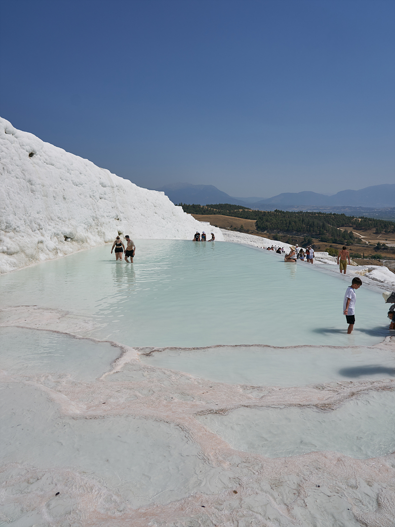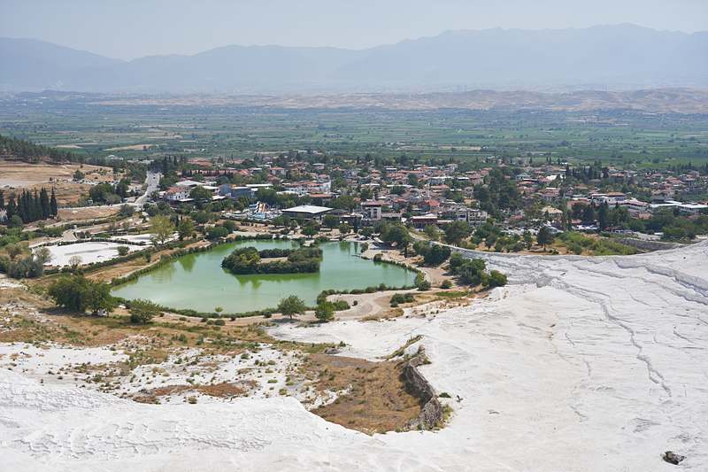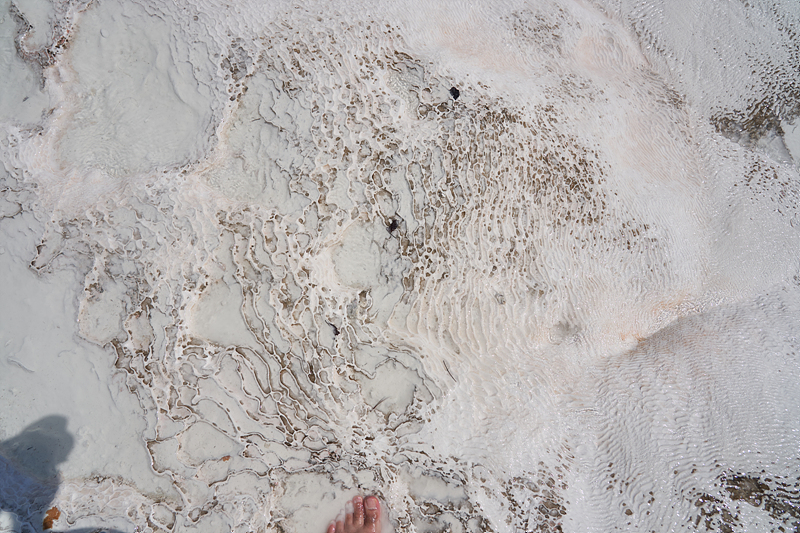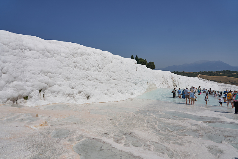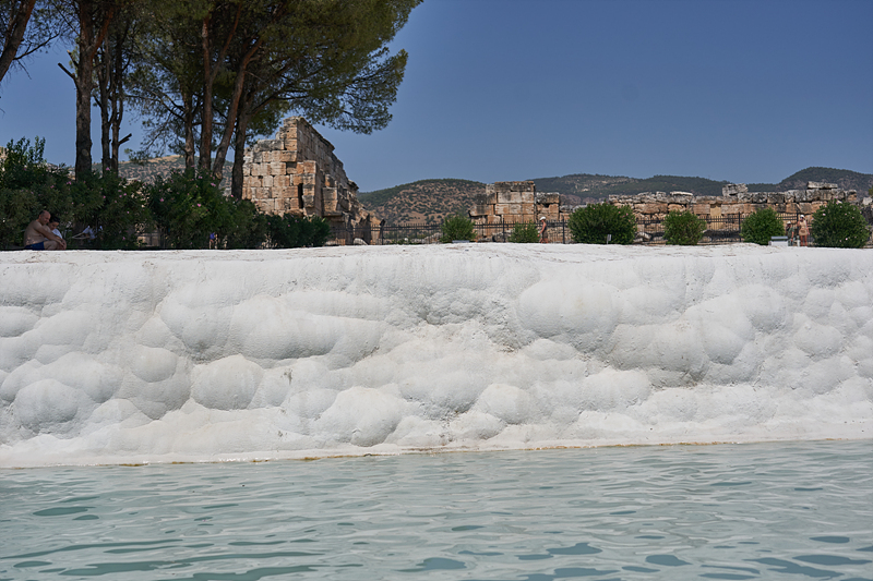 석회층 벽(?) 너머로 아까 히에라폴리스를 구경할 때 걸어갔던 유적지가 보입니다. 이쪽에는 물이 좀 모여 있습니다.