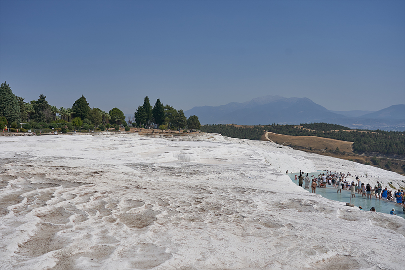 석회층 지역을 마음대로 돌아다닐 수는 없네요. 줄 너머로 보이는 넓은 지역은 들어갈 수 없습니다. 석회층의 보호와 온천수의 감소로 인하여 출입지역을 제한한다고 합니다. 인터넷으로 본 사진이 저곳이 아니었나 하는 생각이 드는데 바닥에 물이 없는 걸 보면 아닌가 싶기도 합니다.
