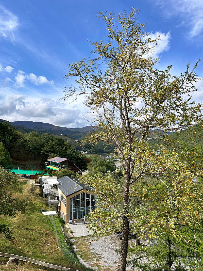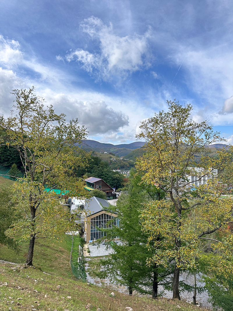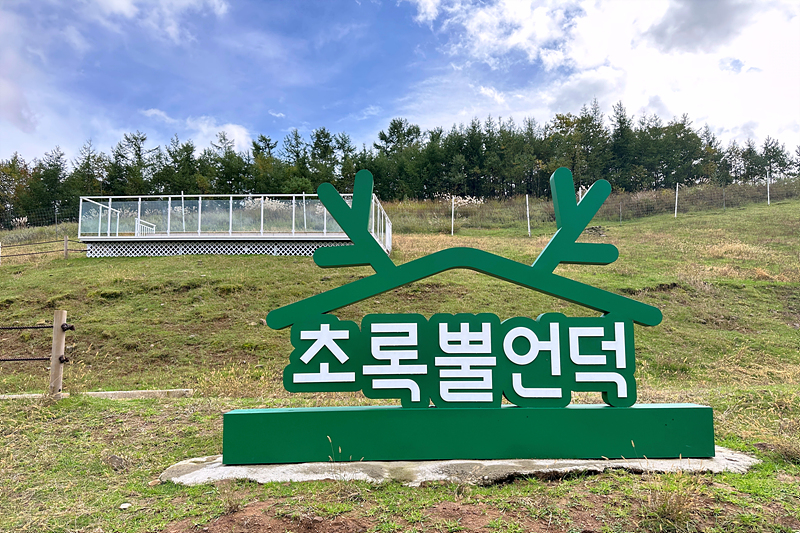 태백여행을 마치고 인천으로 이동하던 중 낮은 산 위로 보이는 몽토랑산양목장을 보고는 잠시 들렀다 가야지 싶어서 찾아갔는데 이런, 다른 곳에 도착해 버렸습니다. '초록뿔언덕'이라는 큰 카페에 도착했습니다. 여기도 괜찮을 것 같아 이곳을 들르기로 생각을 바꿨습니다.